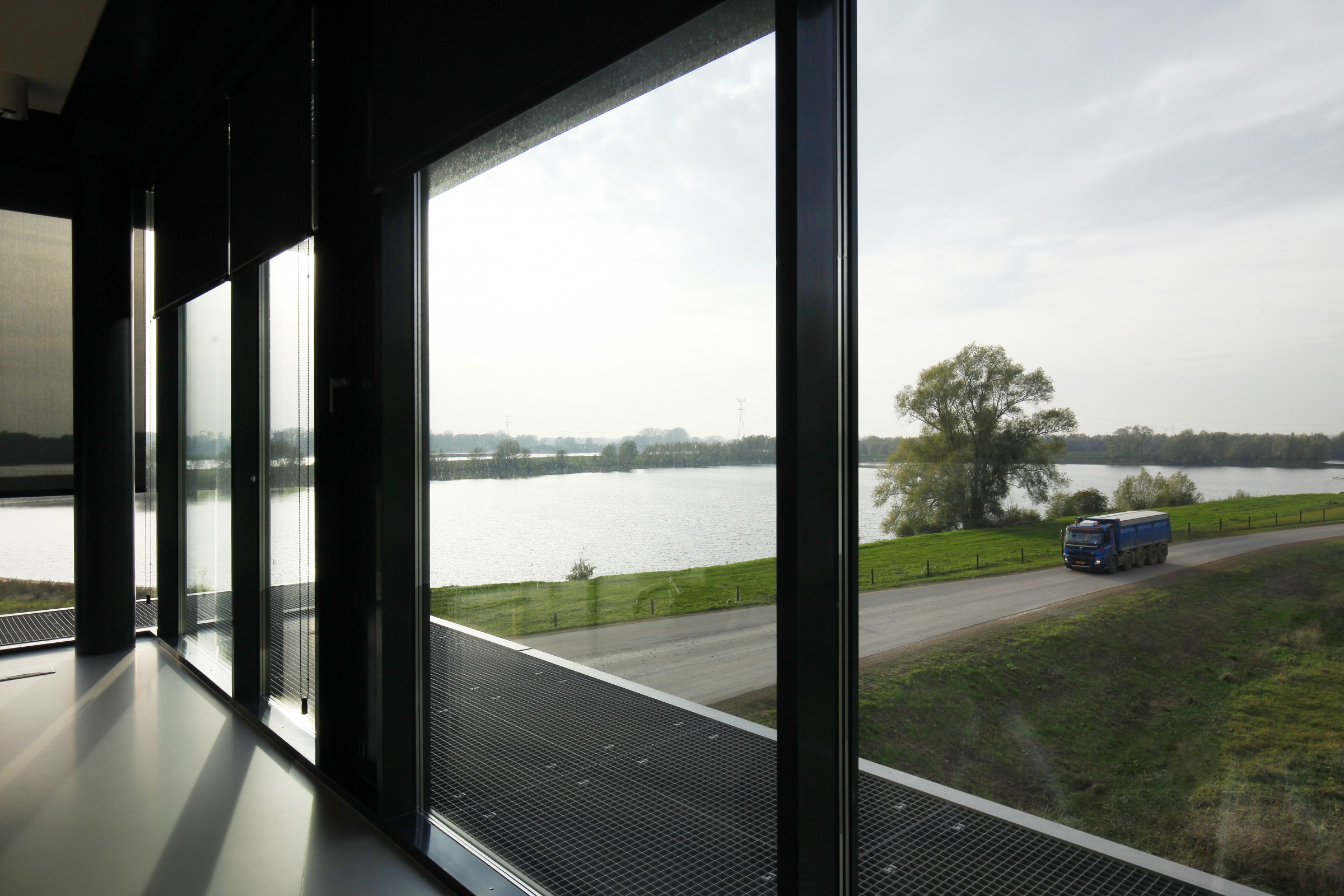 Omdat op de huidige locatie een zeer beeldbepalende steenfabriek stond heeft onze studio de vormentaal gebruikt als uitgangspunt voor de grote overslaghal voor de diverse grondstoffen. Om het terrein te bereiken is de toegangsweg over een dijk gelegd vanuit Dodewaard. Als je het terrein opkomt rijden vanaf deze dijk is de locatie voor het kantoor direct links gelegen als je het terrein op komt rijden. Om optimaal gebruik te maken van de vergezichten hebben wij het kantoor enerzijds zeer transparant gemaakt en aan de andere zijnde gesloten en uitgevoerd in contrasterend metselwerk van een Grauwacke steen.