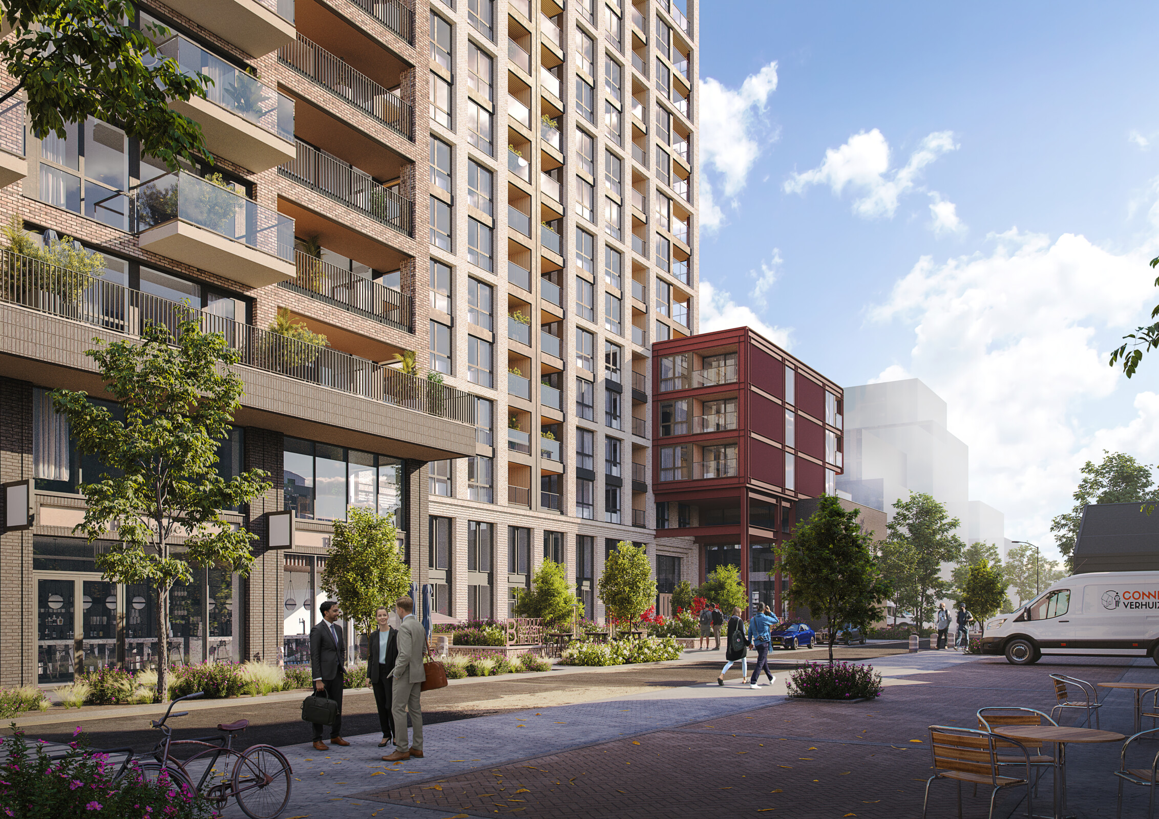 Bij het ontwerpen van omgevingen waar wonen en werken samensmelten hebben wij altijd als doel om een levendige, duurzame en inclusieve plek te creëren waar mensen graag zijn. Dat geldt ook voor deze locatie. De behoefte is om hier een gemengd programma te ontwikkelen inclusief ten minste 300 appartementen. Deze wens hebben wij één op één in ons ontwerpplan opgenomen en daar 6.000 m2 commerciële ruimten aan toegevoegd die ruimte biedt voor bedrijven of een kinderopvang.