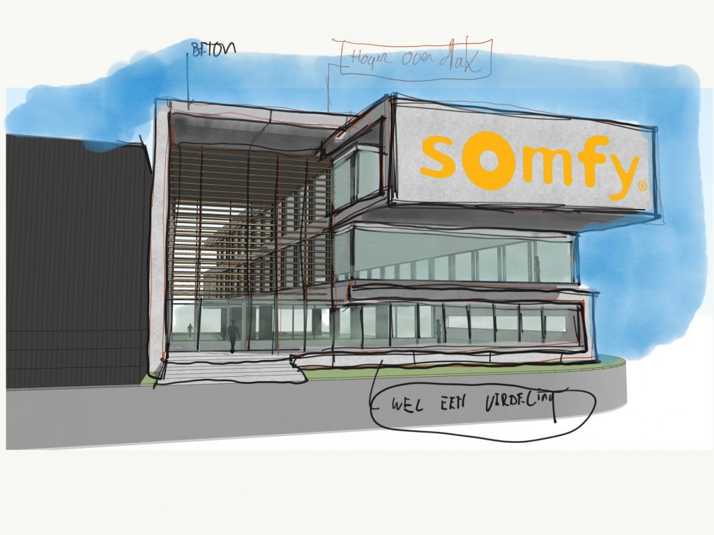 Voor Somfy heeft onze studio een ontwerp gemaakt voor hun hoofdkantoor en bedrijfsruimte. Somfy is een wereldwijd opererende Franse onderneming en toonaangevend fabrikant van elektrische motoren, bedieningen en sensoren voor buitenzonwering, rolluiken, raamdecoratie, gordijnen, tuinhekken, garagedeuren en verlichting.